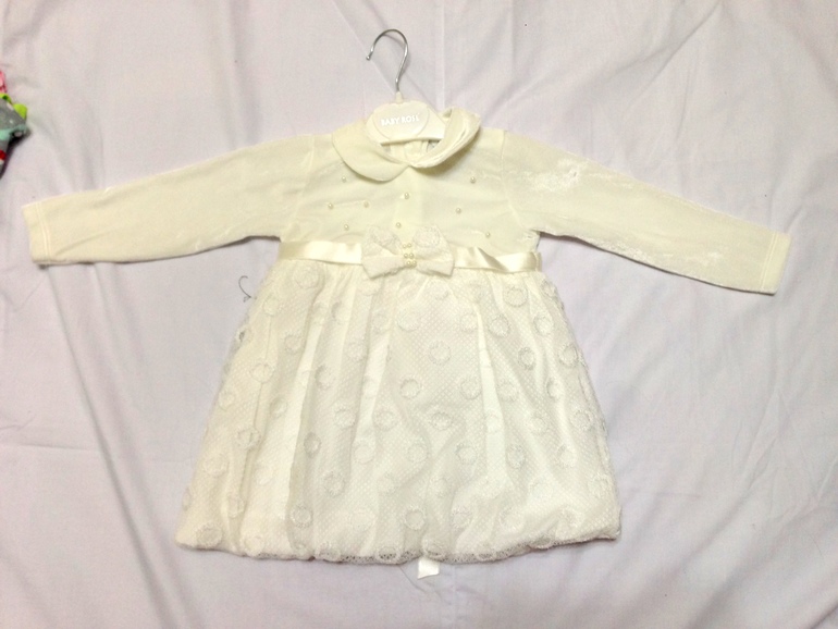 6. Платье одевали на годик (есть фото в дневнике), но маломерит, лучше месяцев на 10. Велюровый верх. 500 рублей.Цвет молочный.