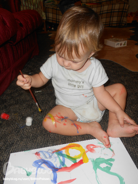 Вообще Лёля рисовать очень любит, правда часто (каждый раз) выходит за рамки :)