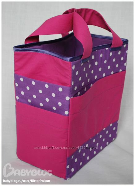 Стенки и дно просто прямоугольники с нашитымии прострочеными заранее карманами затем сшиты боковые ребра, ручки и вшита подкладка ну и на финишний операции обработан бейкой верхний срез