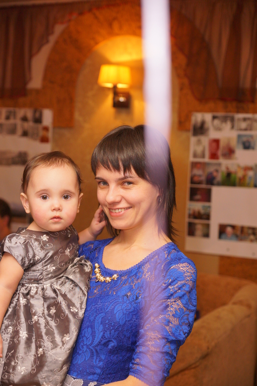 В субботу у нас был первый "выход в свет", отмечали юбилей свекра в ресторане. Было очень весело и шумно, Васена танцевала и бегала среди гостей.