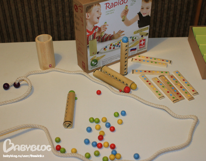 Просто супер для малышей!!! Очень рекомендую всем!!! Играть можно примерно с 2-3 лет.Несколько вариантов игры с разными уровнями сложности. Самый простой для двухлеток: выкладываем перед малышом от 3 до 5 (начинаем с 3) маленьких карт с картинками, называем их, запоминаем. Берём большую карту "путаница", внимательно смотрим и называем что на ней есть. Сравниваем большую карту и "наши" карты, находим карты с картинками, которые есть на "путанице". Радуемся)))) Постепенно игру усложняем. Для начала за счёт добавления маленьких карт, затем за счёт увеличения скорости поиска соответствий, затем добавляем второго игрока - маму, чтобы малыш учился самостоятельно принимать решения, далее карту "путаница" переворачиваем и вспоминаем что мы на ней видели и тп. Особый развивающий момент игры в том, что одни и те же элементы изображаются с разных сторон. К примеру, есть животные, нарисованные с лица и со спины. А кроме того, все картинки разных размеров и на "путанице" тоже размещаются под разными углами, хоть боком, хоть вниз головой) Это нам с вами легко всё найти, а поставьте себя на место двух-трёхлетки - думать придётся очень интенсивно, а ведь тут ещё и скорость реакции важна!) Колода состоит из 72 карт, 12 больших карт "путаница" и 60 игральных карт.