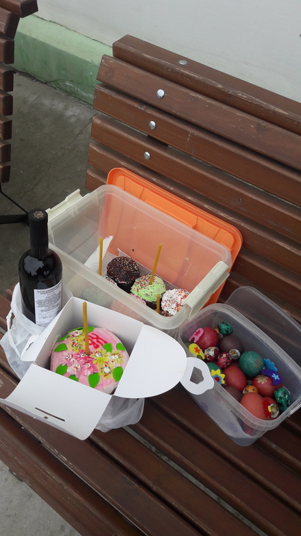 Вообще Александра очень компанейская дама))помимо своих еще и у соседей куличей насобирала и конфет и прочего!!Тк все:Ой,Какая хорошая девочка,на тебе куличи!"))В итоге пришли с пакетиков ушли с пакетищем!!Мне уж не удобно..ну и вроде как отказывать нельзя.Вообщем ждем гостей теперь на куличи))
