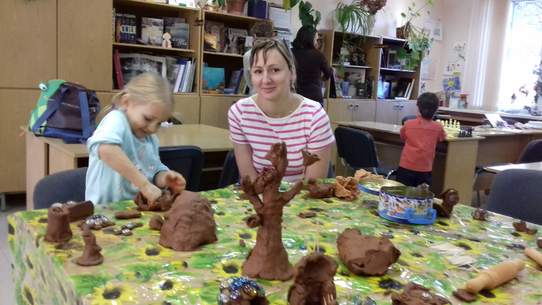 Занятия в любимой библиотеке.Провела очень милое занятие для малышей по сказке " Заюшкина избушка". Основная героиня - лесичка, о ней и говорили, ее и мастерили... Сценарий практически полностью слизала у Катя , спасибо ей огромное!!! Главным отличием нашего занятия было то, что уж очень много играли в подвижные игры из-за малышовости группы...