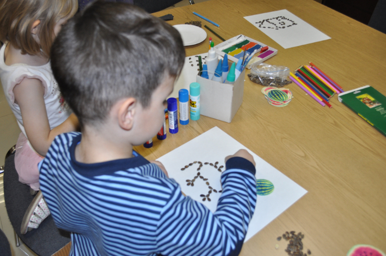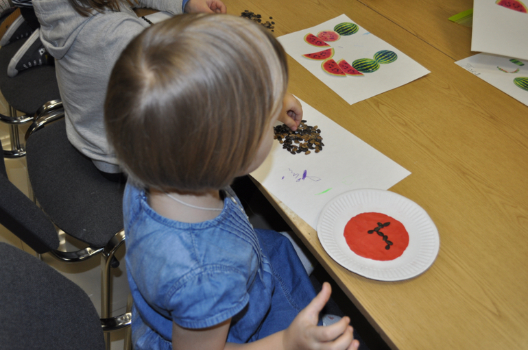 Занятие получилось просто замечательным, а арбузное творчество поражало полетом фантазии... Как обычно, мы, взрослые решили, что деток надо будет наводить подсказывать, а они мгновенно, на ходу сами придумывали новые образы, до которых мы и не додумались!!!