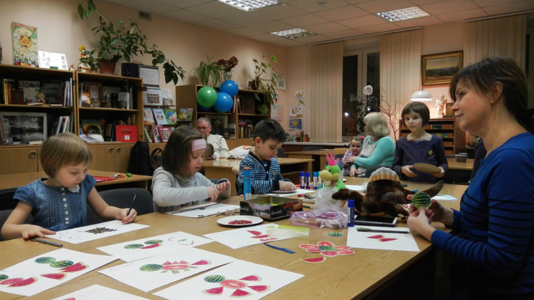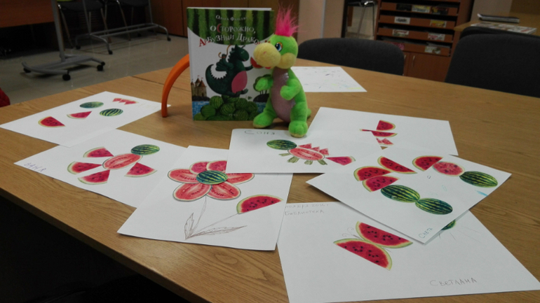 Занятия в любимой библиотеке.На этой неделе детский клуб "БИ+ОП" начал знакомство с замечательным Арбузным Драконом, созданным Ольгой Фадеевой. Почему начал? Да потому что, книжка и сама история такие замечательные, что само собой рождаются идеи для занятий и творчества... Решили сделать серию занятий...