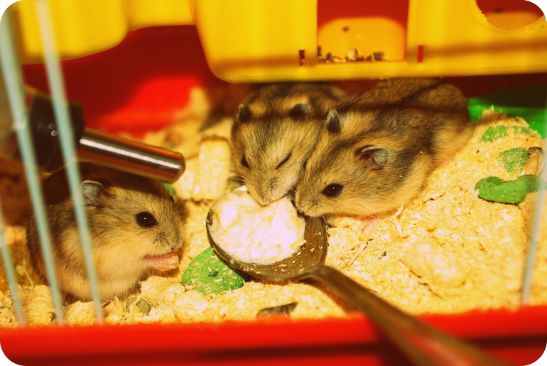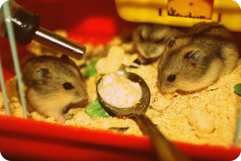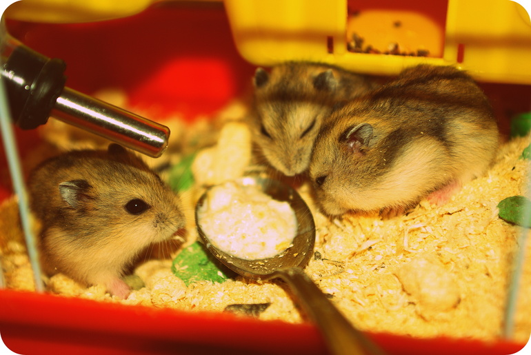 Покупая хомяков, я почему-то была уверена, что они одного пола! И в каком я шоке была, когда когда-то утром подойдя к клетке обнаружила 3 малышей! и уехала на работу....потом пришлось вернуться, т к я поняла, что надо их рассадить, а то они могут их съесть(были у нас случаи...в детстве)...папу увезла...стали растить малышей...Спустя 3 недели...малыши уже подросли! И вдруг ребенок мне кричит -Мама, смотри у нас опять малыши! А я не пойму кто родил-то "мама или малыши"? Кого отсаживать....и не стала их рассаживать... стали все вместе жить! Потом я узнала, что беременность проходит 20 дней...и в то время когда она родила, папа-хомяк успел зачать еще хомяков! Куда их теперь девать?!)
