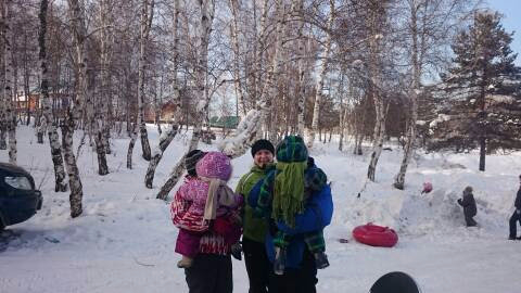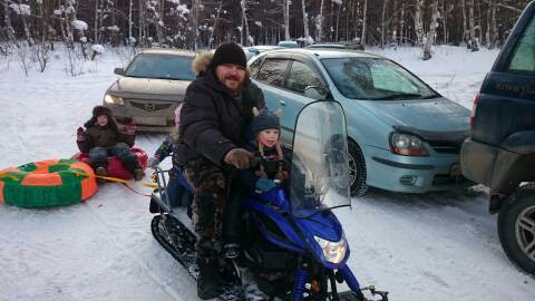 Братишка и сестренкиЕздили сегодня на шашлыки большой компанией. Катались на тюбах и снегоходе. Витю снегоход очень понравился, замерз, а слезать никак не хотел.