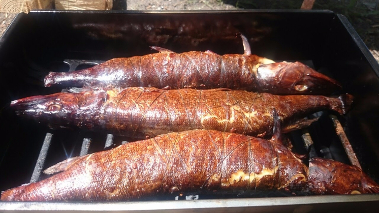 А еще Вить научился бросать спиннинг , на утро, как только встал, сразу помчался ловить рыбку