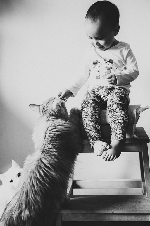Начала составлять предложения, например "кой ме дейку" (открой мне дверку), но чаще обходится отдельными словами. Говорит много, но чаще абсолютно непонятно. Зато знает всех наших котов у родственников по кличкам))) Кода (Шкода), Кокьс (кокс) и У (Ру). Больше всего любит рыжего Ру, потому что тот - котонянь и ласковый кот, который никогда от Васьки не убегает.