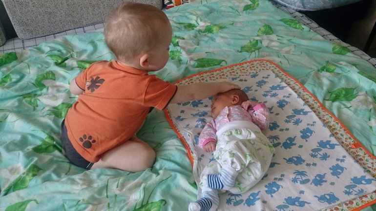 ВитюшкаУ Витя сегодня внезапно проснулась великая братская любовь. Помогает мне менять подгузники, и вообще просто крутится рядом.