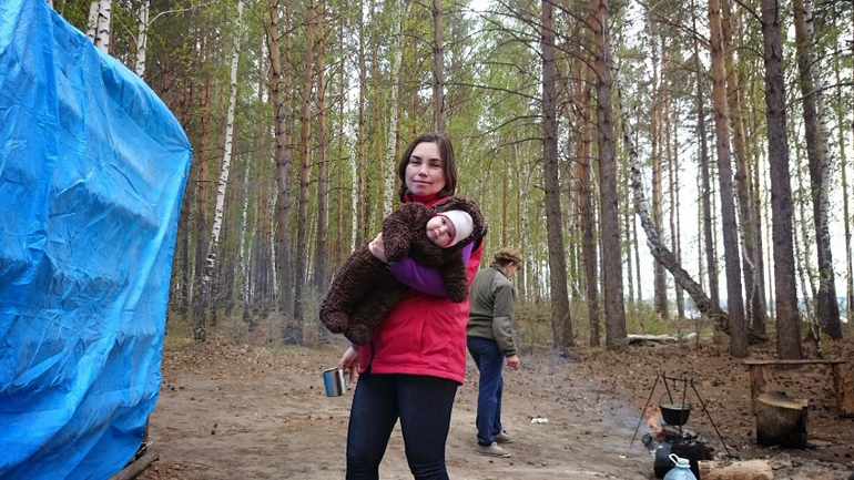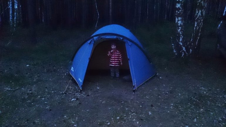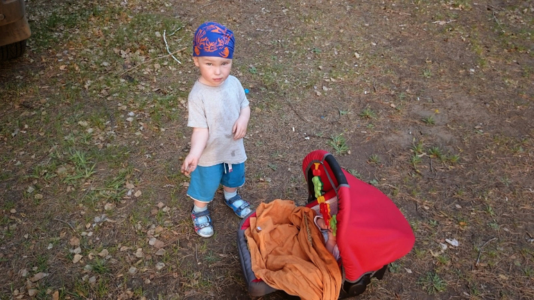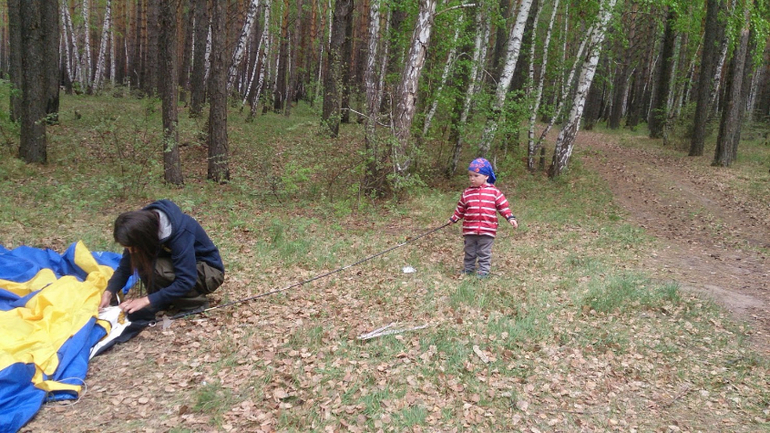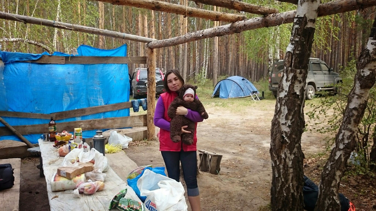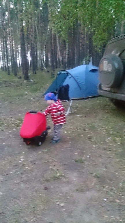 Дети дорогу в 2,5 часа перенесли замечательно: Вить-то уже путешественник со стажем, а за Ваську я переживала, что она распищится по дороге, но наша принцесса продрыхла всю дорогу и проснулась только, когда мы остановились на своей полянке.