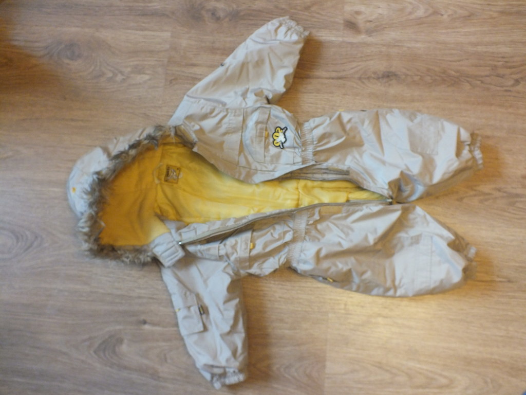 2. Комбинезон бежевого цвета. На позднюю осень или весну. Размер на 18 мес. Очень удобная молния (далеко расстегивается), на рукавах и ногах - резинки-манжеты. Комбинезон носили мало - состояние очень хорошее. Экв. 1000р.