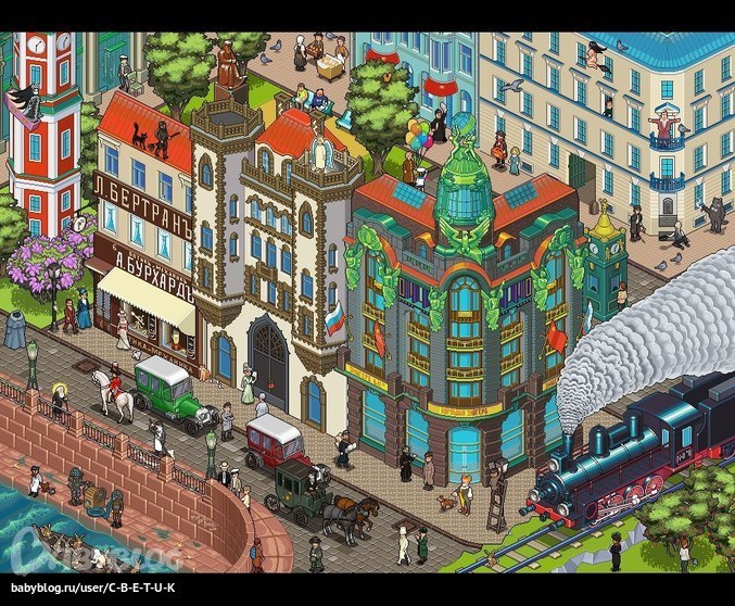 Ага 22 уже. Так там уверена еще больше. Мне интересно, что это за мужик с шариками и на крыше с черным котом? И ангел на крыше тоже стоит.