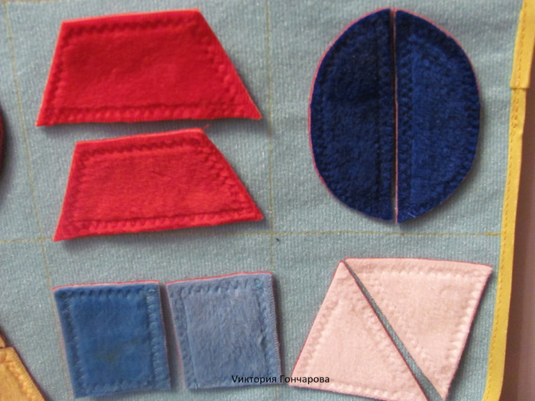 Здесь основа очень мягкая, в отличии от модели "застежки-расстежки". Фигуры очень приятные на ощупь, и в отличии от предыдущего варианта, здесь все прошито очень качественно). Смысл прост - найти пару. Конечно и другие варианты игры - знакомство с цветом, формой, количеством, счетом.