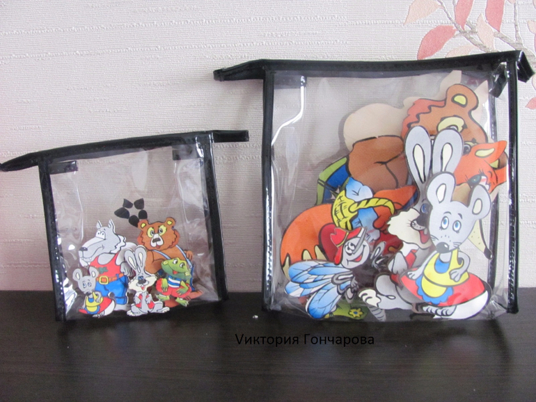 Раскладывали по сумочкам большой\маленький. Сумочки из отдела "Летуаль" - любит их использовать в играх, раньше нравилось открывать/закрывать и складывать. Сейчас используем в играх "Магазин".