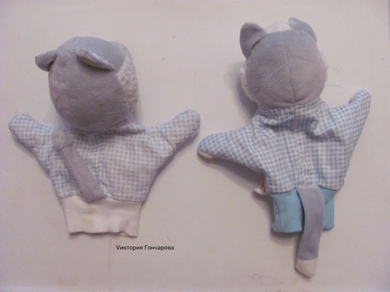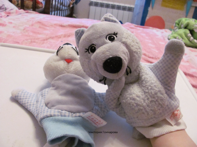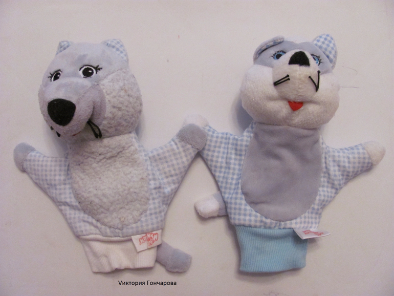 5. Игрушки-перчатки, у нас от фирмы "Мякиши". Ничего сверхъестественного, но для ребенка волшебство, когда игрушки оживают). Есть две - кот и волк. Ребенок очень их любит до сих пор, разговаривает с ними (хотя он со всеми игрушками разговаривает
