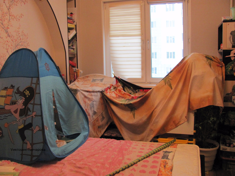 И различные постройки из простыней и одеял.