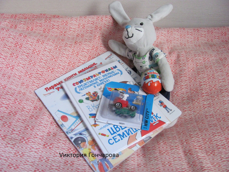 Еще зайка, который приносит сюрпризы - большие и не очень. Кстати заяц - единственная мягкая игрушка...