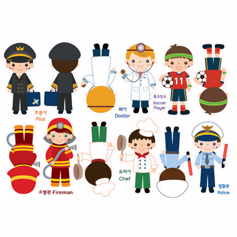 Было два варианта листов - с большими куклами одной профессии и лист с маленькими куклами разных профессий.
