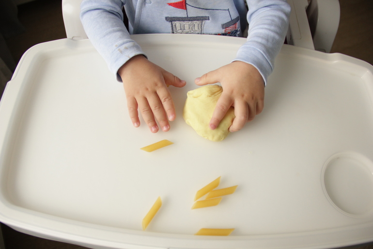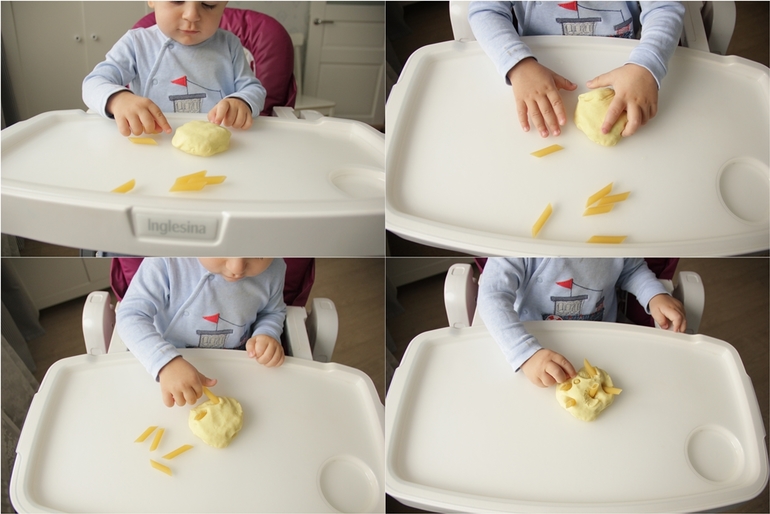 Сегодня было больше похоже на Монтессори. Играли с тестом для лепки ( делала сама: 1 стакан муки, 1/2 стакана соли, 1/2 стакана воды, 2 столовые ложки подсолнечного масла).