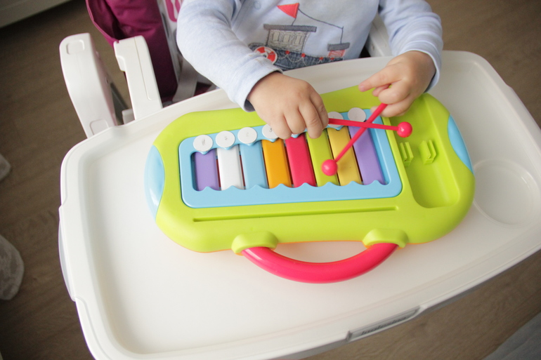 Проигрываем на ксилофоне ноты, я играю одну песенку, потом произвольное выступление Пети. Затем слушаем запись какого-нибудь музыкального инструмента. В конце беру его на ручки и кружимся под классическую музыку в такт.