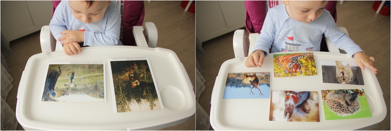 Смотрим разные карточки и картины художников. Сегодня были лесные звери. Очень любит это дело, в течения дня тоже смотрим, говорю "иди карточки смотреть", на диван залезает и сидит с умным видом.