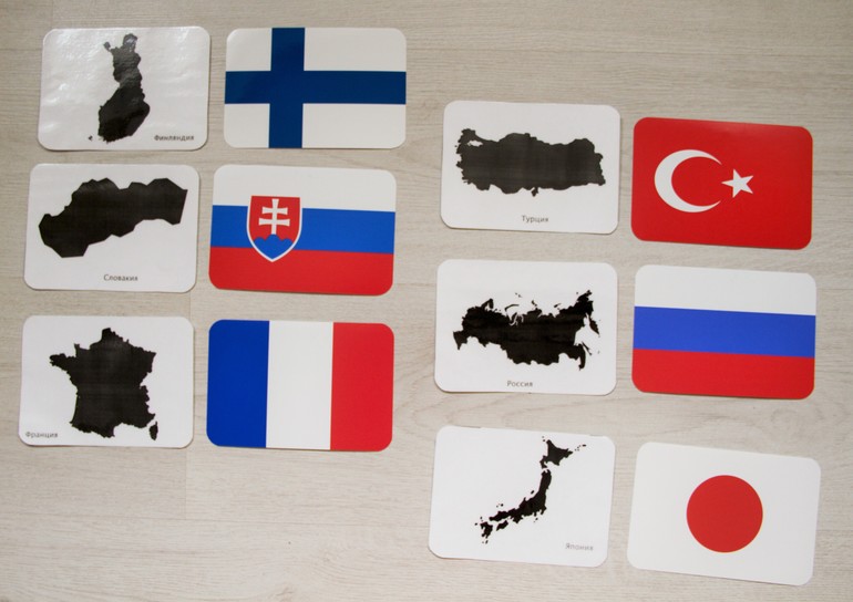 Что можно делать с ними: совсем малышам можно просто играть в мемори, проговаривая при этом страны. Можно разрезать карточки на половинки и играть, как с пазлами.