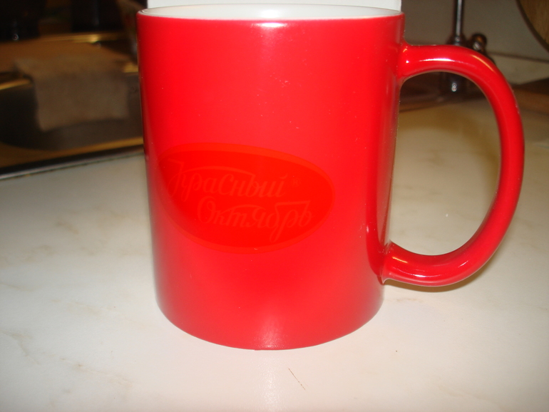 Кружка покрыта особым термочувствительным слоем эмали "хамелеон", который меняет свое состояние в зависимости от температуры. Так, например, в холодном состоянии изображение напечатанное на кружке скрыто под эмалью кружки, а при наливании горячего напитка, слой "хамелеон" становится полностью прозрачным и заранее напечатанное изображение становится видимым. На данный эффект как на огонь или воду можно смотреть весьма долго ;).