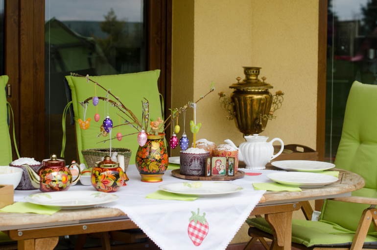 Как-то спонтанно решили отметить Пасху вместе с друзьями семьями. И получился просто замечательный праздник! Разделили между собой, кто что готовит. Стол решили накрыть русский - винегрет, оливье, борщ, окрошка, пельмени, манник.