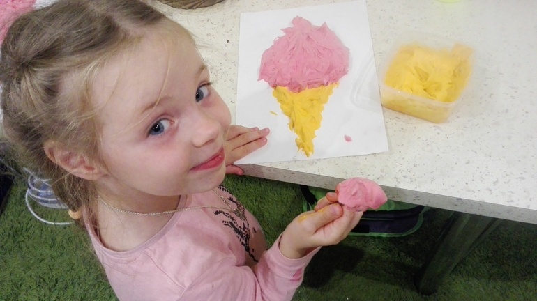Пробуем.пена для бритья,красители пищевые и клей пва)))