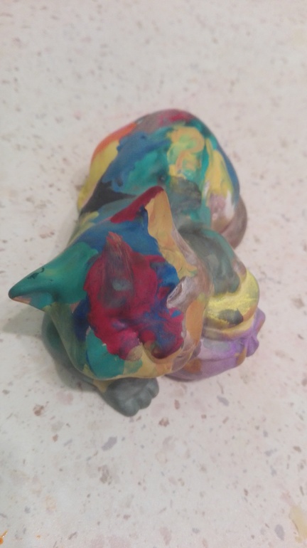Сегодня раскрашивали вот такого котейку.Расцветку Варвара Андреевна придумала сама!)Мне очень понравился)Ей тоже.Поставили на полку)