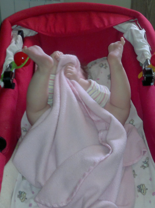 Вот со вчерашнего дня нам нравится держать ноги исключительно так.В ручке ей вкладываю лапку держит.Но в рот пока не тянем)))смешная!Как обезьянка,которая хочет за лиану зацепиться)