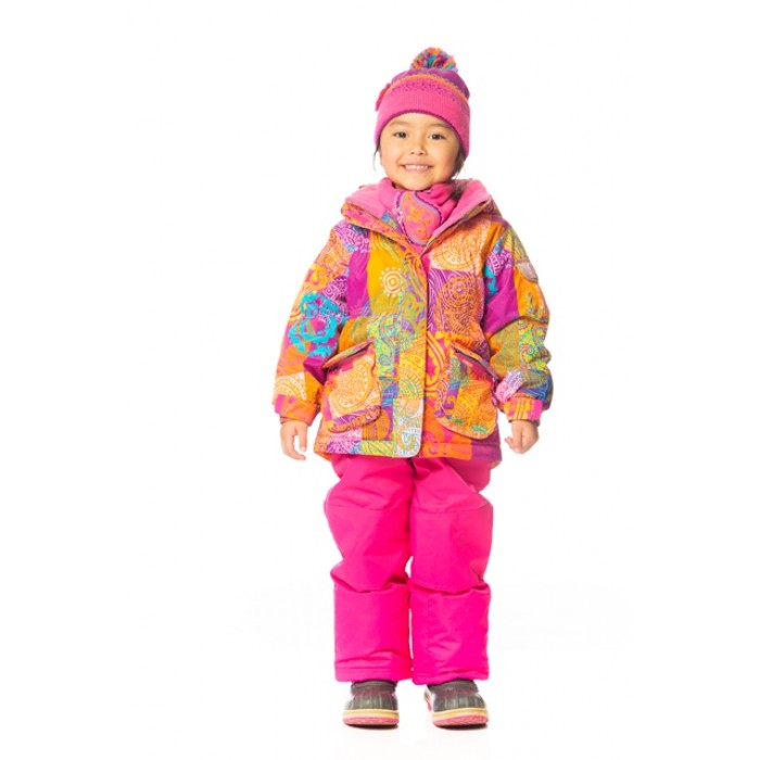 4. Комплект с розовыми штанами I 808 W15 (Куртка, полукомбинезон, шарф (флис), манишка (флис))