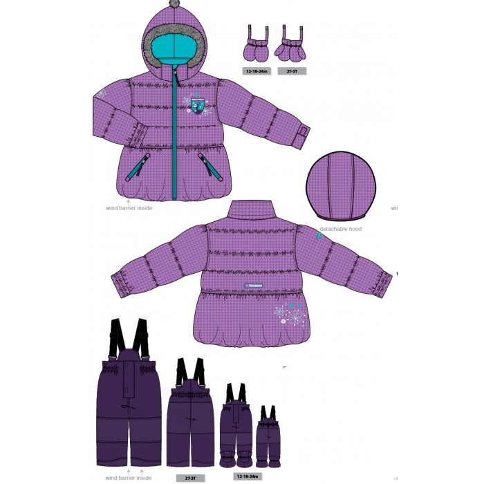 5. Комплект с сиреневыми штанами I 808 W15 (Куртка, полукомбинезон, шарф (флис), манишка (флис))