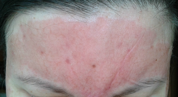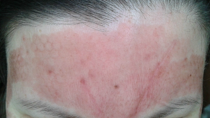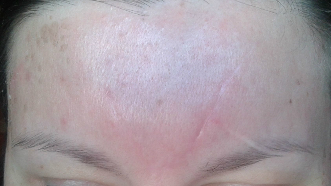 Через 3 часа после процедуры, лоб красный, но еще не очень