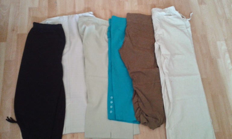двое длинных брюк (белые), остальные капри