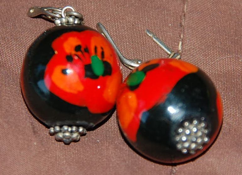серьги . ручная роспись. маки