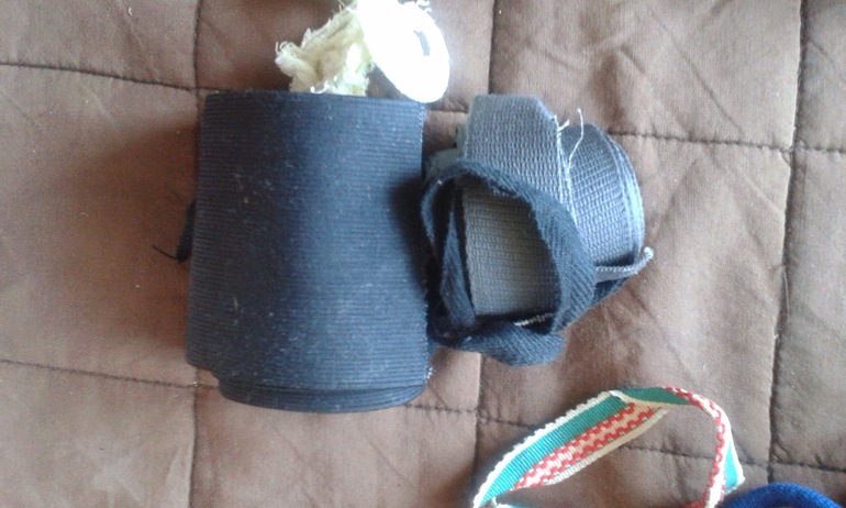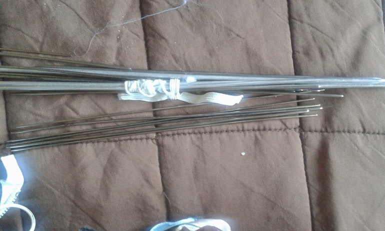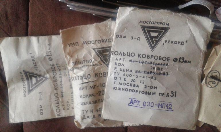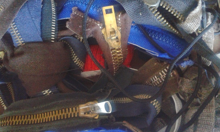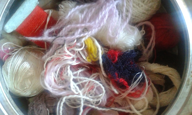 Отдельный мешок с нитками, молниями, тесьмой, кольца для ковров, вязальные крючки, спицы, резинка, застежки. Экв. 300 рублей.