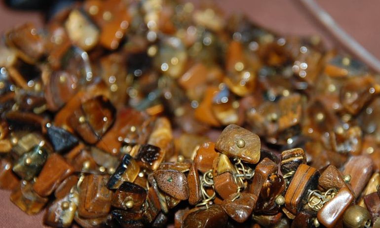 тигровый глаз , мелкий. Его мног, это были длинные бусы в несколько слоев