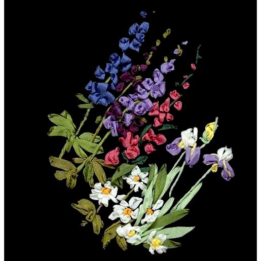 Набор для вышивания лентами на бархате "Клумба" . Производитель: Магия шелка, Россия. В набор входит : бархат, игла, ленты, инструкция, цветная и многоразовая черно-белая схема, описание, индивидуальная упаковка. Размер: 13x13 см . Эквивалент 450 рублей.