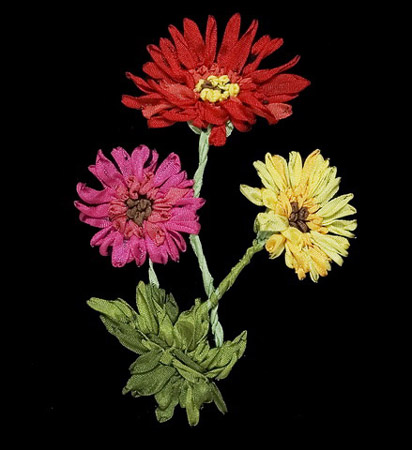 Набор для вышивания лентами на бархате "Герберы" . Производитель: Магия шелка, Россия. В набор входит : бархат, игла, ленты, инструкция, цветная и многоразовая черно-белая схема, описание, индивидуальная упаковка. Размер: 13x13 см . Эквивалент 450 рублей.