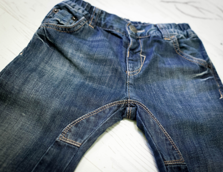 18. Джинсы на трикотажном поясе-резинке. Размер 2-3 года (по длине скорее на 2 года, см. замеры). Цена 400 руб.