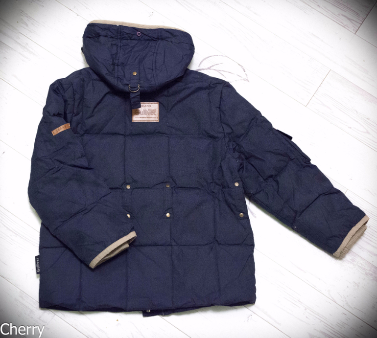 5. Очень тонкий пуховик на осень-весну "In Extenso". Набивка: 90% наполнитель/10% перо. Скрытый капюшон в воротнике. Размер 7-8 лет. Цена 600 руб.