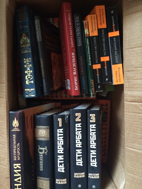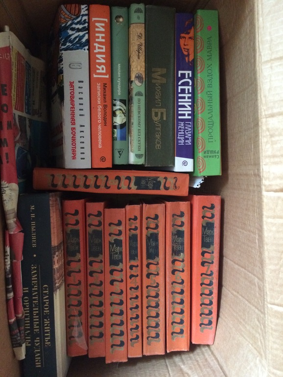 А это мои книги, которые уже 6 лет пылятся в коробках, т.к. мне некуда ставить книжные шкафы. Я сфотографировала часть, нет сил вытаскивать все коробки.