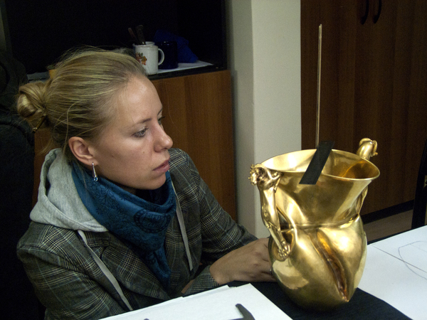 Да, это золотой кубок ахеменидского происхождения. Внутри — полые стенки — служил типа термоса, например, вино оставолсь дольше холодным))) Я когда рисовала его посчитала первоначальный объем — 1 литр)))