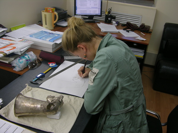 Потом вещи тщательно описываются и зарисовываются для отчета...