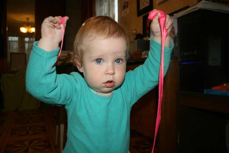 Мы сегодня с Мартой страдали фигней. На улице дождь. Проливной. В носу сопли. На нижней челюсти - опухшие первые моляры под десной. В общем - полный набор, чтобы сидеть дома и заниматься чем попало. Например, возились с жевачкой для рук. Она любит ее не мять (а я тащусь от этого), а рвать. Причем на мелкие тончайшие нити, которые надо потом все найти по полу/одежде/мебели и собрать в комок обратно. Еще читали книжки. Пост про наши "сейчашние" книжки обязательно сделаю. Появилось много новенького. Сделали песочницу в тазу для купания. Высыпала туда 3 кг гречки и пшена, игрушки для песка, пару чашек и ложек - занятие длилось минут 7 от силы. Быстро надоело. Потом танцевали, играли с пальцами, СПАЛИ вместе под звуки тарабанящего по подоконнику дождя (аж, три часа!), доели папины пельмешки и посмотрели "Продюсеров" - Марта явно не равнодушна к танцам, и мюзиклам, как следствие, - смотрела не отрываясь весь танец Умы с "Лео" в офисе))) Разговаривали с бабушкой по скайпу, кололи на пороге балкона лесные орехи молотком (Марта под мои удары приговаривала "Тыка-тыка") и бегали по всей квартире...