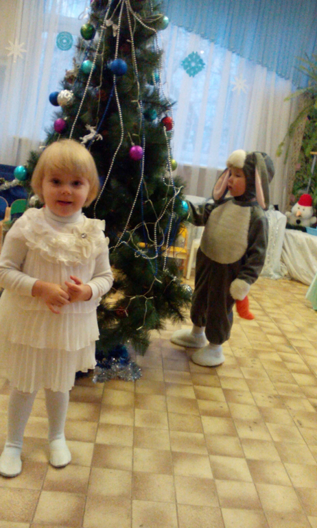 К костюму прилагается морковка, ее в сад не относила, но Олежка утром сам схватил и понес))) Переоделись и ребенок в приподнятом настроении помчался к елке)))