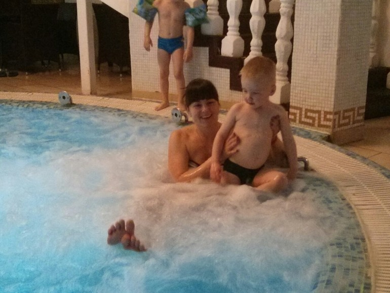 Ну а вечером мы наконец добрались до СПА. Очень переживали, что Олежка не будет купаться, т.к. в море в прошлом году он заходил только по колено. Но, тут мы отрывались по-полной. Купались и в детском бассейне, и в джакузи и под отрытым небом.