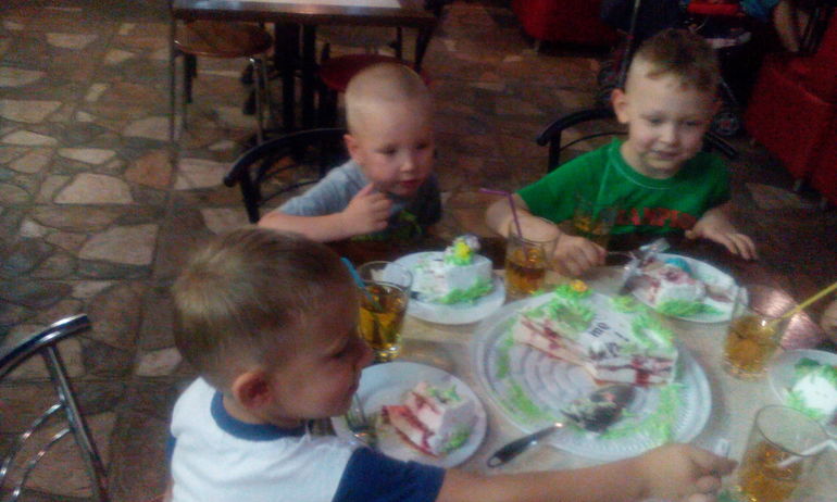 Сам праздник получился (наверное, диск еще не видела) интересным, нас не пустили в группу, но в конце родители с шарами зашли, каждый взял за ручку своего ребенка и все дружно поднялись в новую группу. Воспитатель и няня (второй воспитатель в отпуске) произвели положительное впечатление. Но, через 2 дня у нас снова начался насморк, и с садом мы пока подвязали.